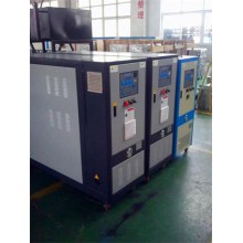 模溫機是指將加熱過的傳熱介質通過高溫泵浦注入到用熱設備或產品中,與其進行熱交換,損失熱量后的傳熱介質循環回加熱裝置繼續加熱,如此反復,通過溫控裝置控制其溫度,使之達到工藝生產所需要的溫度.模溫機根據傳熱介質的不同分水溫機和油溫機兩大類型.