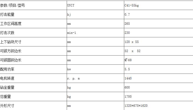 | 產品規格: | C41-55KG分體式空氣錘 | ||