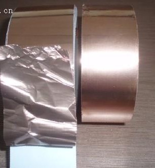 銅箔膠帶,鋁箔膠帶:根據(jù)需要背亞克力膠或?qū)щ娔z,稱為導(dǎo)電銅箔膠帶,導(dǎo)電鋁箔膠帶,背亞克力膠也稱為單導(dǎo)銅箔,自粘銅箔,單導(dǎo)鋁箔,自粘鋁箔。而背導(dǎo)電膠后由于雙面導(dǎo)電,故也稱作雙面導(dǎo)電銅箔膠帶簡(jiǎn)稱雙導(dǎo)銅箔,雙面導(dǎo)電鋁箔膠帶簡(jiǎn)稱雙導(dǎo)鋁箔。銅鋁箔膠帶其基材一般為純銅箔,純鋁箔,銅箔選用高質(zhì)量的紫銅箔,主要規(guī)格按銅箔基材有.0.025,0.035,0.05, 0.075., 0.10mm,背膠層厚度為0.035-0.040mm,單面背導(dǎo)電膠或絕緣膠,鋁箔主要規(guī)格按鋁箔基材厚度有0.010, 0.025,0.030,0.050,0.075, 0.10mm等,單面背導(dǎo)電膠或絕緣膠。