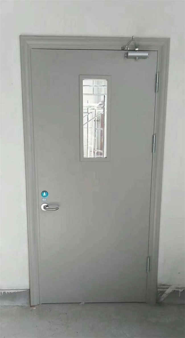 鋼質防火門為用鋼質材料制作門框、門扇骨架和門扇面板,門扇內若填充材料,則填防火隔熱材料,并配以防火五金配件所組成的具有耐火性能的門,在高層民用建筑設計防火規范中將防火門定為甲、乙、丙三級,并對其耐火極限作了規定,甲門不得低于1.5小時,乙門不得低于1.0小時,丙門不得低于0.5小時.