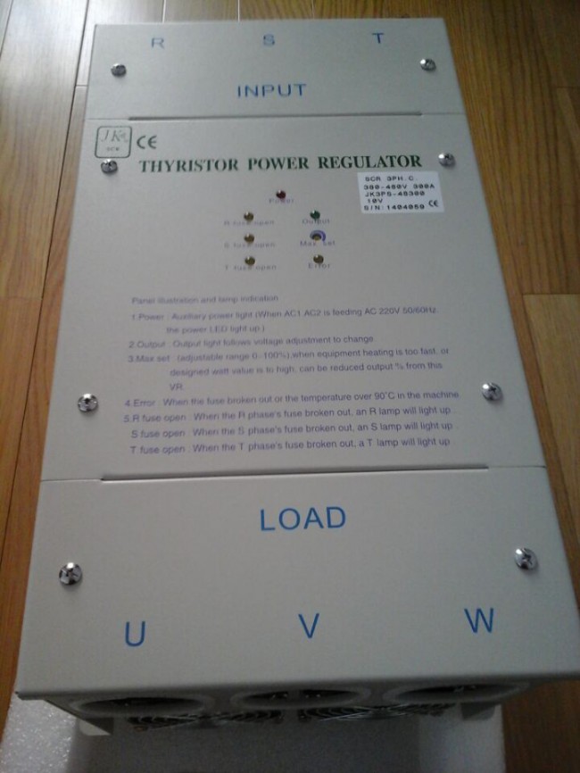 5. 應用于負載: IR燈管,石英燈管,二矽化鉬,加熱器。 使用制鞋機械,塑膠吹瓶機械,塑膠壓出機械,真空蒸鍍機,真空濺鍍機,熱處理爐,電熱熔爐,電熱鍋爐,漆包線機械,抽紗機械,紡織機械,恒溫恒濕系統。