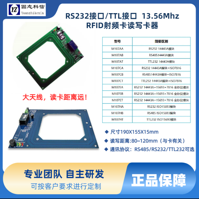 M107CARS485接口Mifare S50,S70,FM11RF08,FM1208,及其兼容卡
